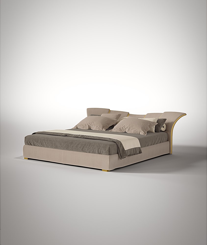 Design in the Roman sleeping area is at its best with beds. These absolute protagonists of the sleeping environment envelop the guest in a precious embrace thanks to the choice of refined fabrics that aim to emphasise the most intimate moments of the day with elegance and class.